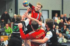 Dieses Anspiel von Niklas Wieczorek (oben) an den Kreis auf Manuel Honerkamp misslingt. Das war nicht das Einzige an diesem Abend, was beim ASV Senden nicht funktionierte. Foto: rau