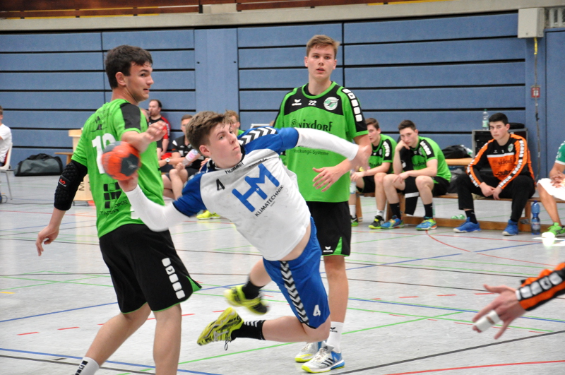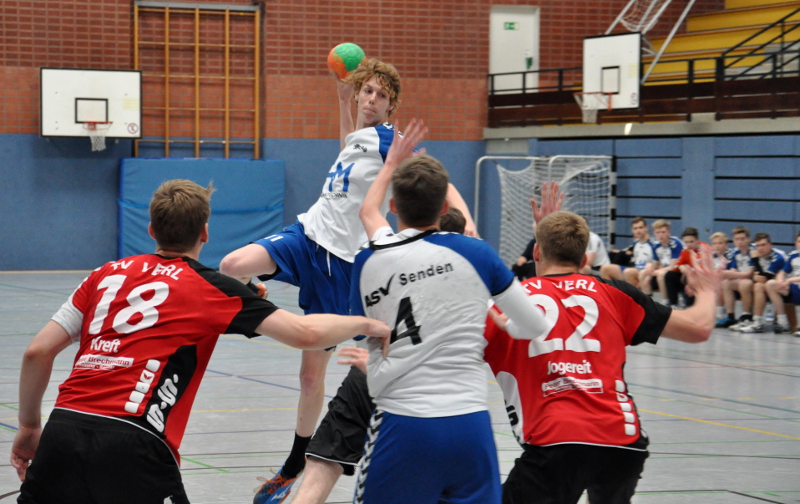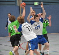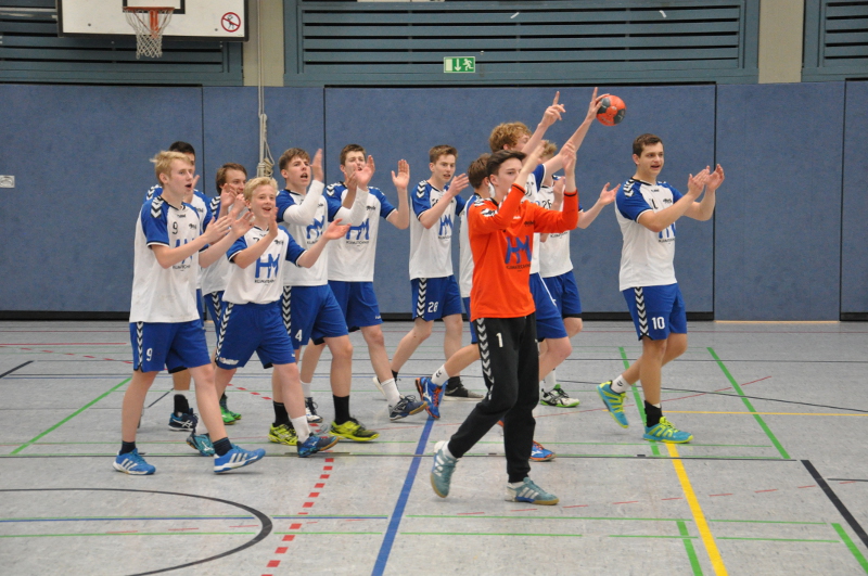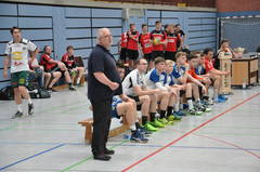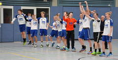 Da Senden und Verl beide 3:3 Punkte hatten und gegeneinander 17:17 Unentschieden spielten, kam es zum finalen 7m-Werfen, dass unser Team gewann. Auf dem Foto sehen wir die Mannschaft bei der letzten Traineransprache vor dem Finale.