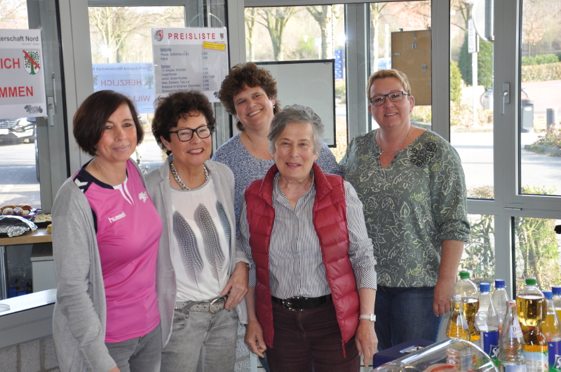 "Ein herzliches Danke schön an alle Eltern, die uns in der auslaufenden Saison unterstützt haben". Das wollte die Verantwortliche Beate Böhmer (Foto 1.v.r.), die den Verkaufsstand zusammen mit Simone Kretschmer (3.v.r. im Hintergrund) leitet, noch unbedingt loswerden. Im Jugendbereich ist die Saison beendet, stehen nach Ostern schon wieder die Qualifikationsrunden für die Spielzeit 2018/19 an.