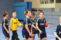 Nach einer kurzen Verschnaufpause stellten die E1-Trainer Melly und Felix ihre Mannschaft auf den stärker erscheinenden Gegner aus Havixbeck/ Roxel ein. Mit einer geschlossenen Abwehrleistung schafften sie zur Halbzeit eine überraschende 8:3 Führung. Diese Führung war für die zweite Spielhälfte aber auch dringend notwendig. Das Polster von 5 Toren war in der zweiten Hälfte fast aufgebraucht als eine hervorragende Torwartleistung den 11:10 Sieg gegen Havixbeck/ Roxel sicherte.