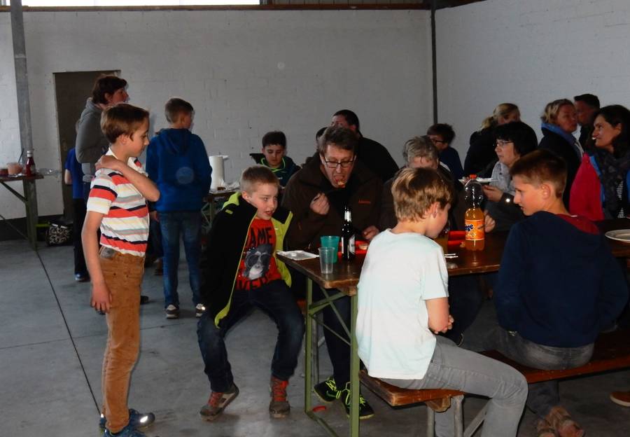 Nach einer Trainingseinheit am Freitagnachmittag traf man sich am frühen Abend auf dem Hof der Familie Wiedau um dort gemeinsam die Saison zu beenden. Räuber & Gendarm, Fußball u.a. Tobemöglichkeiten waren hier bei tollem Wetter genauso wie das gemeinsame Abendessen mit Grillwürsten und Buffet ein rundum gelungener Einstieg in die anschließende Scheunenübernachtung.