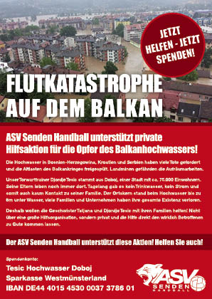 Flutkatastrophe auf dem Balkan: ASV Senden Handball unterstützt private Spendenaktion!