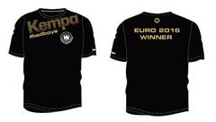Der Teamsportausrüster des ASV Senden Handball, Stefan Hamsen mit Sport Area, bietet das EM-Sieger-Shirt "Bad Boys" zur Bestellung an.