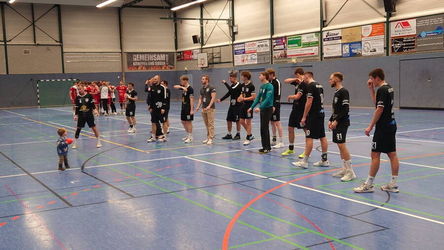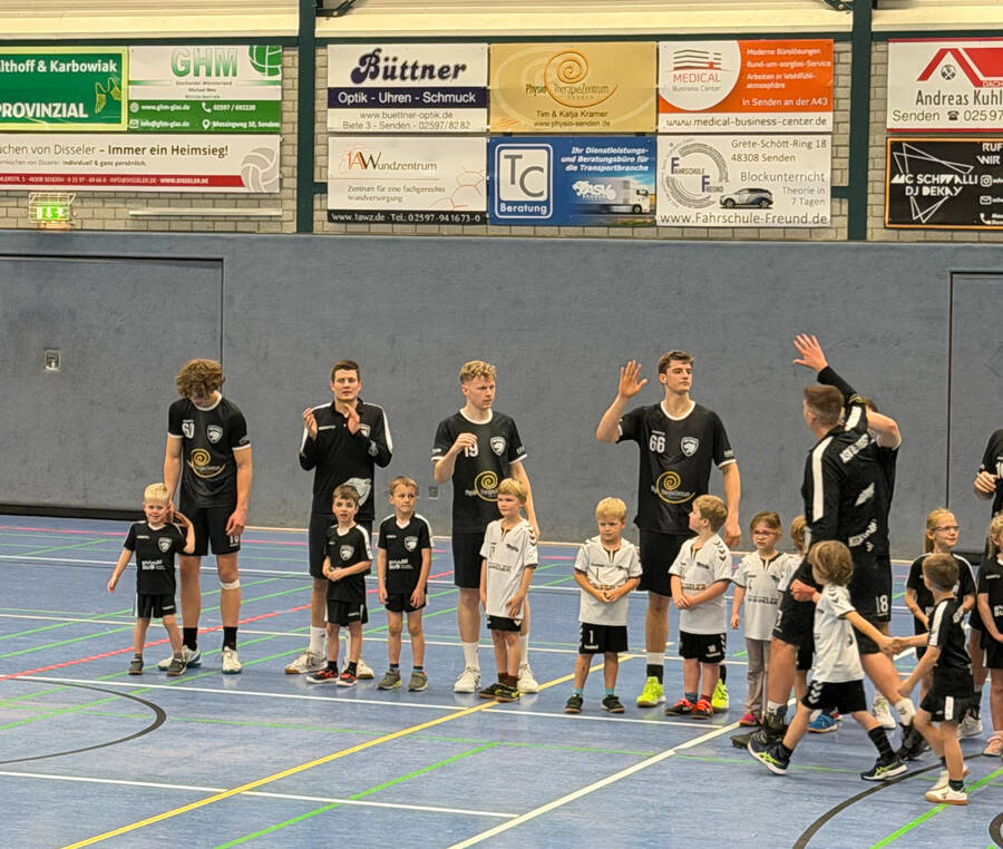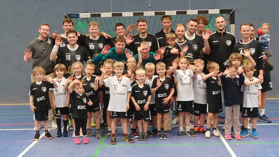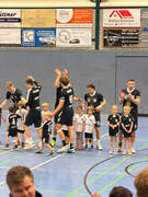 Ihre anschließende Unterstützung unseres Oberligateams zusammen mit ihren Eltern und Geschwistern von der Tribüne aus, war dann aber rein ergebnistechnisch nicht von Erfolg gekrönt. Dafür gab es aber ein mehr als spannendes Match bei der knappen 30-32 Niederlage gegen den verlustpunktfreien Tabellenführer TSG Altenhagen-Heepen 2. Zum Abschluss des Tages gab es noch ein Abschiedsfoto mit der Mannschaft!