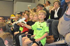Mit dabei waren die aktuellen Mini-Spieler unserer Abteilung, die dem immens wichtigen Match als Einlaufkinder den richtigen Rahmen boten. Bewaffnet mit Ratschen und Klatschpappen sorgten sie dann über die gesamte Partie für viel Rabatz.