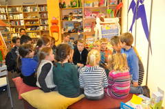 Im Zuge des Sponsoringabkommens konnten sich zum zweiten Male, nach der Premiere im letzten Frühjahr, um die 15 Kinder der Abteilung in der gemütlichen Leseecke der Bücherei versammeln und den beiden Geschichten lauschen.