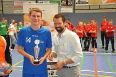Handball Lemgo ist Titelverteidiger, auf dem Foto mit 1A-Wundzentrum Geschäftsführer Holger Münster bei der Übergabe des Wanderpokals im letzten Jahr, den es für das Team aus Ostwestfalen zu verteidigen gilt.