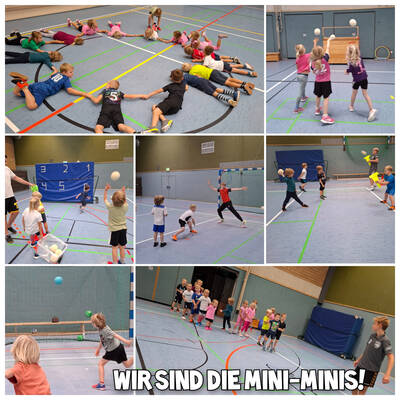 Viele Kinder sind von den Ultra-Minis hochgekommen und einige wenige sind neu dazugekommen. Wir spielen unglaublich viele Mannschaftsspiele, um den Kampfgeist zu wecken. Natürlich spielt bei den Mini-Minis immer mehr Technik und auch Regelverständnis eine Rolle. Aber das Wichtigste bleibt und muss der Spaß an der Bewegung, der Spaß am Freunde treffen und der Spaß am Ball sein. Dies sieht man jede Woche den Kindern an, wie sie in die Halle stürmen, sich den Ball schnappen und sich erstmal warm machen. Bis zum Pfiff, denn dann geht es richtig los. Aufwärmspiele wie Ringe fangen, Kistenball und Pommes fangen sind der Renner. Danach noch ein Stationslauf mit 2-3 Mannschaften und es geht in die andere Hallenhälfte -> werfen, prellen, balancieren, springen, fangen, das alles wird dort mit verschiedenen Aufbauten trainiert. Währenddessen messen sich einige andere Kinder im Handball oder beim Parteiball.
