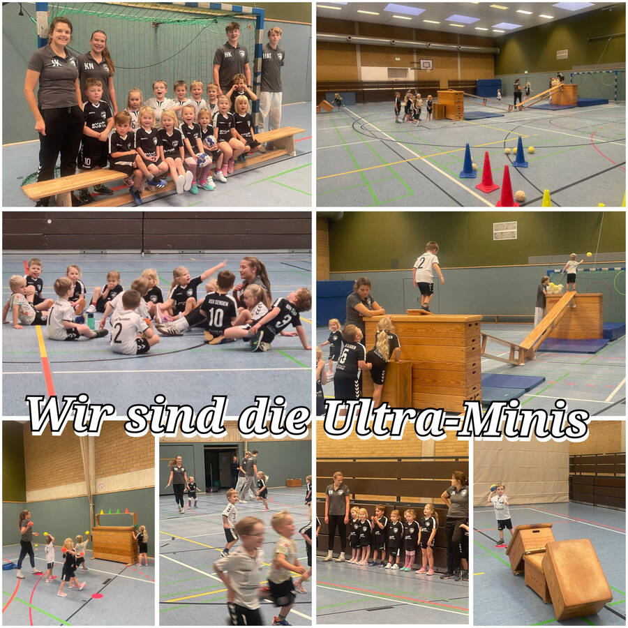 Jeden Dienstag findet das Ultra-Mini Training für Jungen und Mädchen unter Nadines Leitung statt, unterstützt durch die Jugendhandballer Henri Kopshoff und Henrik Täger.