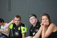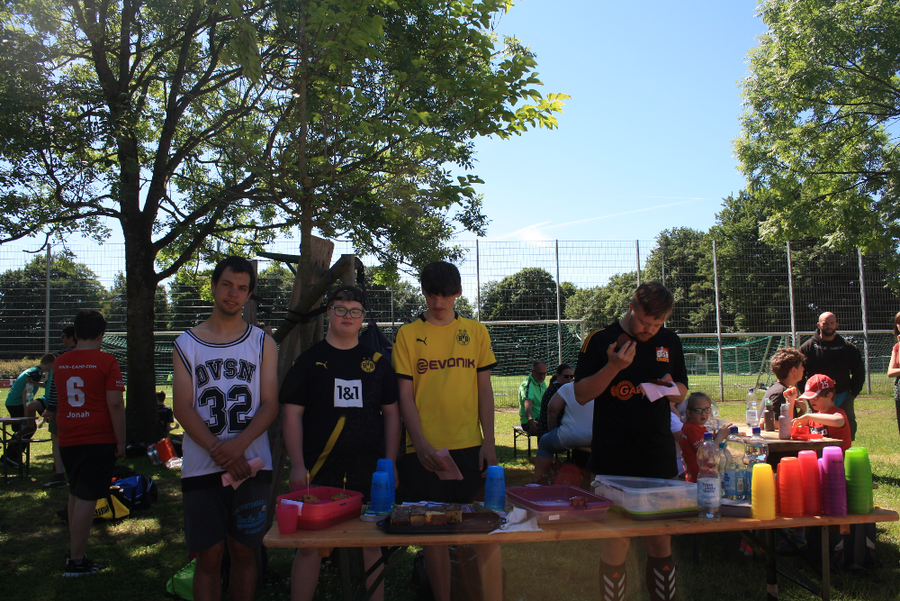 Um 8 Uhr morgens ging es am Sonntag, 12.06. mit dem Bulli los Richtung Solingen. Von 10 bis 12 Uhr gab es mit Mannschaften aus Ahlen und Duisburg in der Solingener Soccer-Freiluftarena die erste Trainingseinheit zum Kennlernen. Die Übungen rund ums Ballgefühl wurden von der Fußballabteilung Solingen geleitet. Hier zeigte sich sogar, dass wir, wenn wir unbedingt müssen, auch Fußball spielen können.